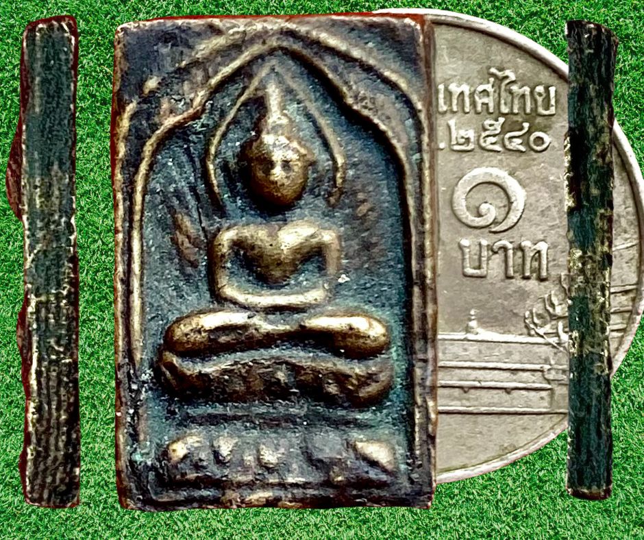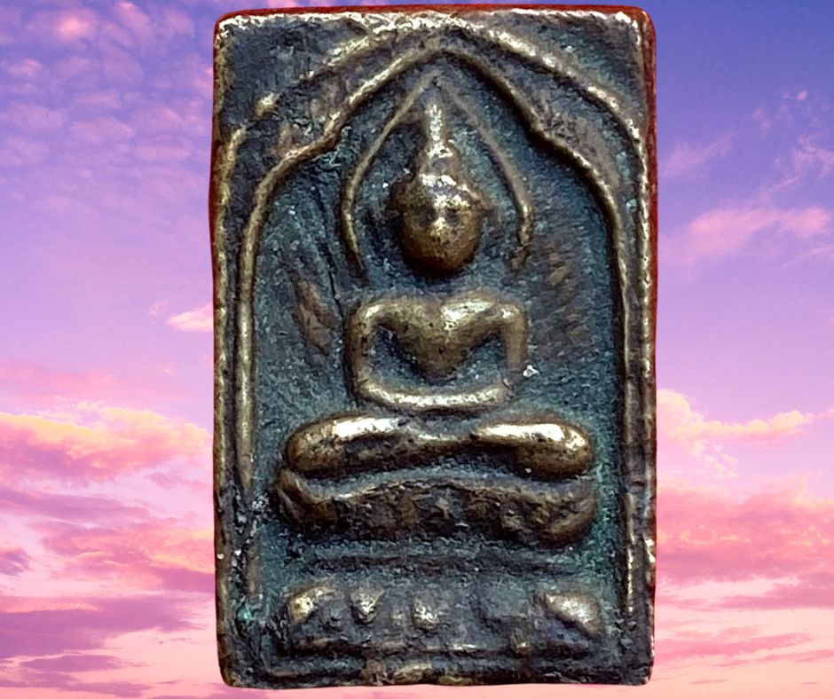 พระสี่เหลี่ยมประภามณฑลข้างรัศมีเนื้อทองผสมหลังจาร หลวงปู่ศุข วัดปากคลองมะขามเฒ่า ชัยนาท