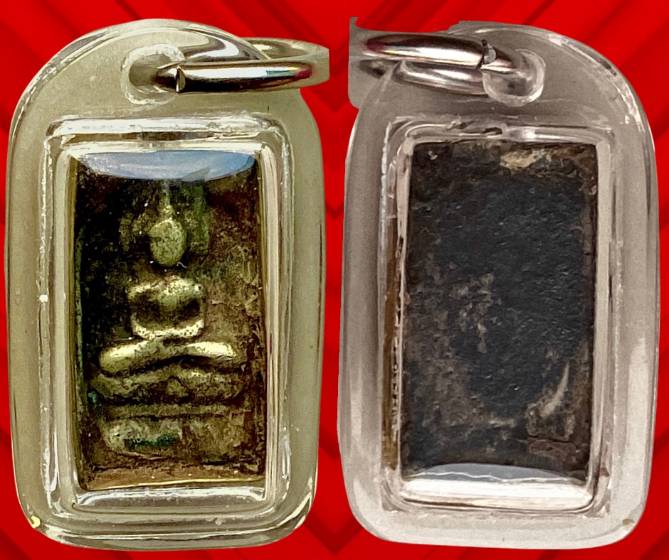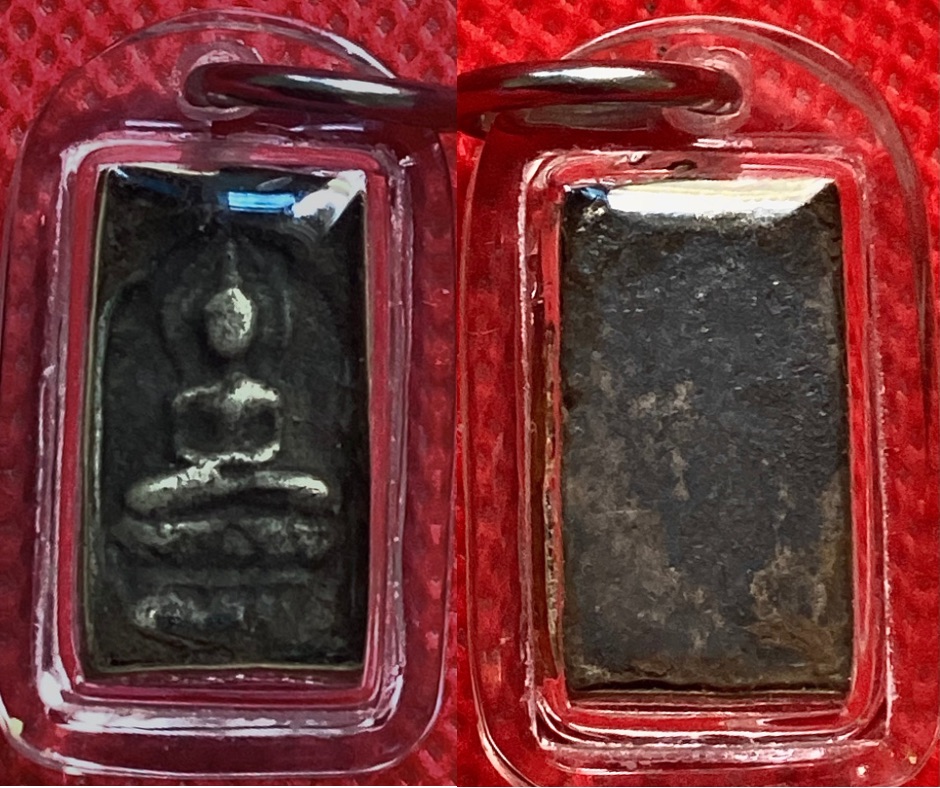 พระพิมพ์สี่เหลี่ยมประภามณฑล ข้างรัศมี เนื้อชินตะกั่ว หลวงปู่ศุข วัดปากคลองมะขามเฒ่า