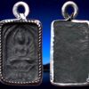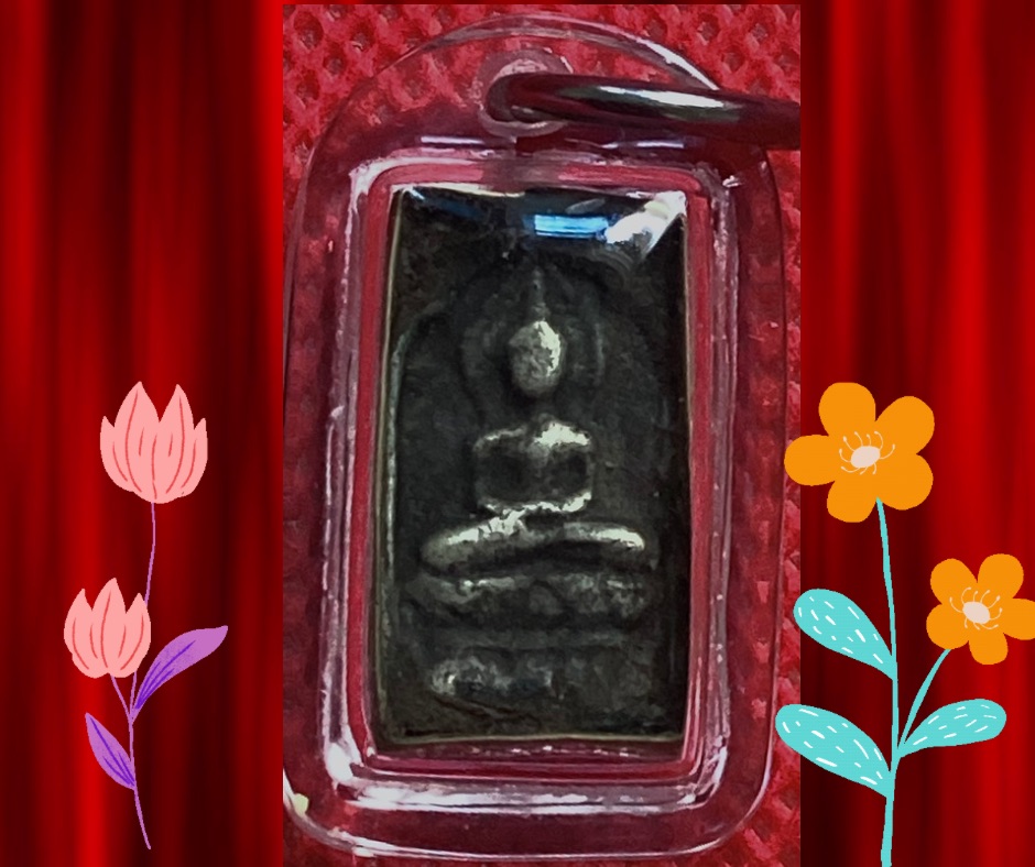 พระหลวงปู่ศุข วัดปากคลองมะขามเฒ่า พิมพ์สี่เหลี่ยมประภามณฑลข้างเรียบ เนื้อเงินหลังจารอักขระตัวพุด เลี่ยมพล๊าสติกันน้ำทับขอบทองเหลืองที่เลี่ยมไว้เก่าเดิม 5,000.- บาทครับ.