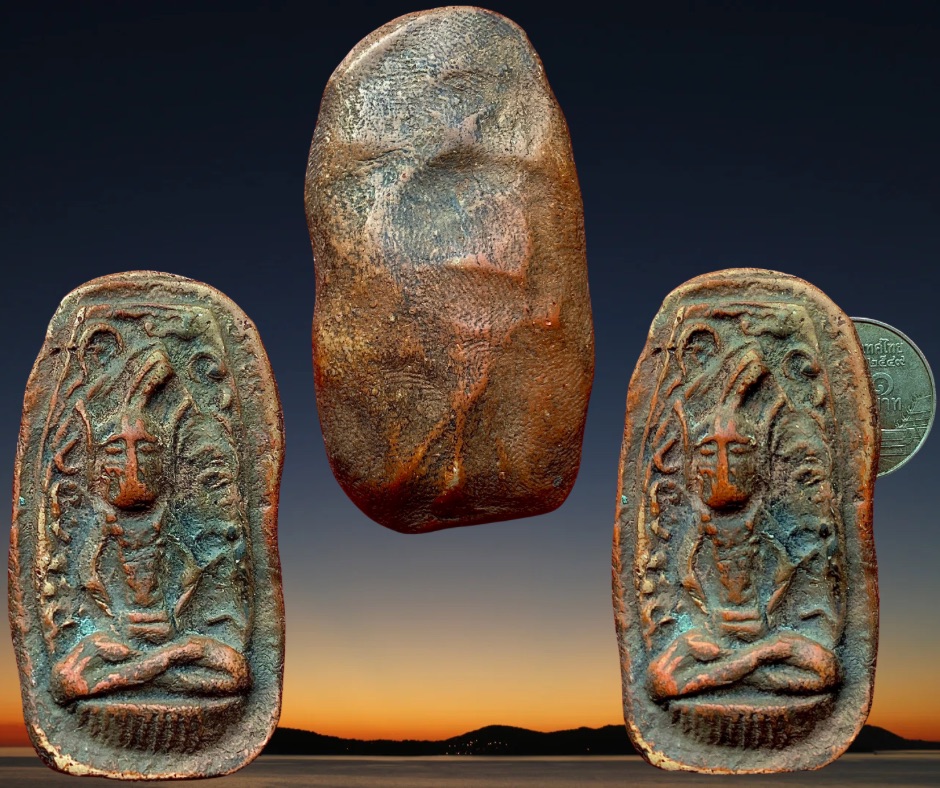 พระพิมพ์ฤาษีหลวงพ่อเชย วัดท่าควาย สิงห์บุรี เป็นพระเนื้อดินเผาพิมพ์ใหญ่เนื้อค่อนข้างละเอียด ขนาด 3.0 x 5.5 ซม. พระฤาษีหลวงพ่อเชยท่านสร้างไว้สามครั้ง ครั้งที่ 1-2 สร้างเป็นเนื้อดินเผา ครั้งที่ 3 สร้างเป็นเนื้อใบลาน องค์นี้เนื้อดินเผาสภาพสมบูรณ์ 800.- บาทครับ.