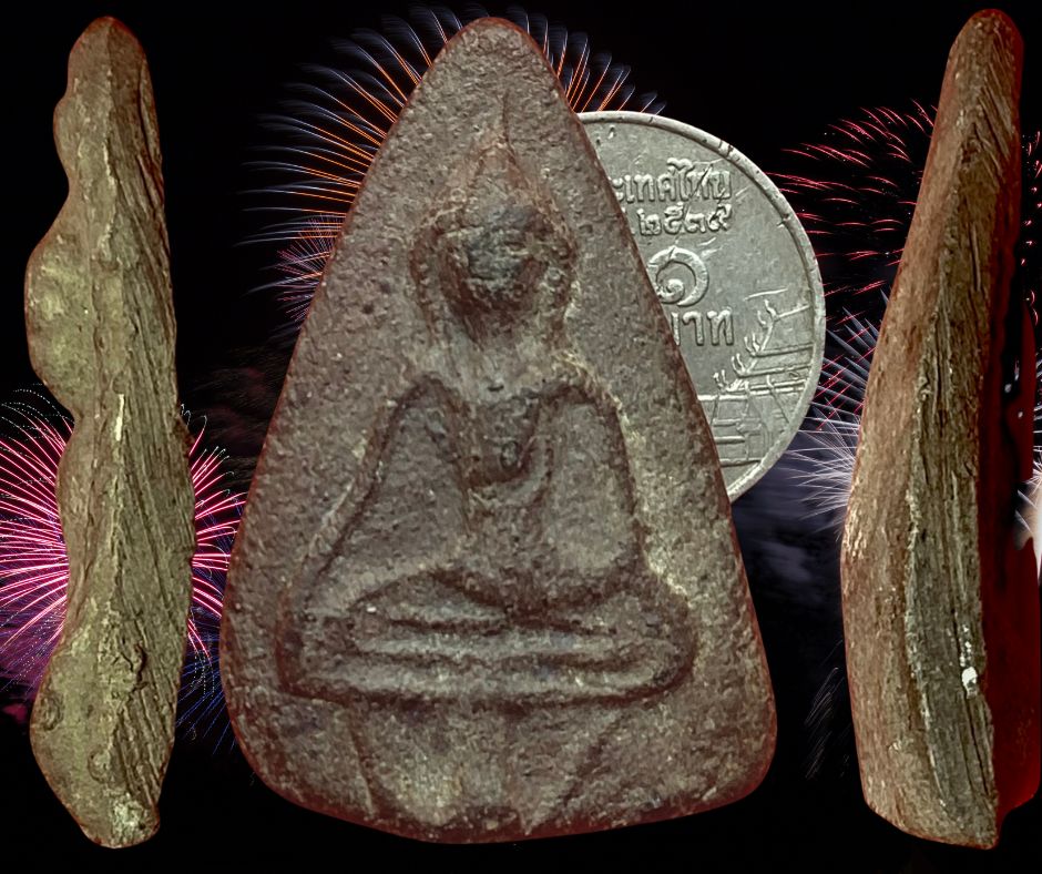 พระนางเส้นด้ายกรุวัดพญาดำ สุโขทัย วัดพญาดำเป็นวัดร้างตั้งอยู่นอกเมืองในเขตอุทยานประวัติศาสตร์ศรีสัชนาลัย สุโขทัย มีพระขึ้นจากกรุมากพิมพ์ทั้งเนื้อดินและชิน นิยมสะสมกันทุกพิมพ์ องค์ที่นำมาเสนอนี้เนื้อแกร่งโชนเนื้อเตาทุเรียงหลายท่านก็เล่นเป็นกรุวัดบางขลัง สภาพสมบูรณ์เดิมจากกรุ ขนาด 2.5 x 3.5 ซม. 1,500.- บาทครับ.
