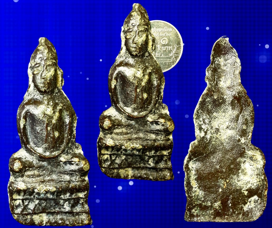 พระหูยานสมาธิพิมพ์ฐานสูงบัวฟันปลาเนื้อชินตะกั่วสนิมแดง กรุวัดท้ายย่าน ชัยนาท