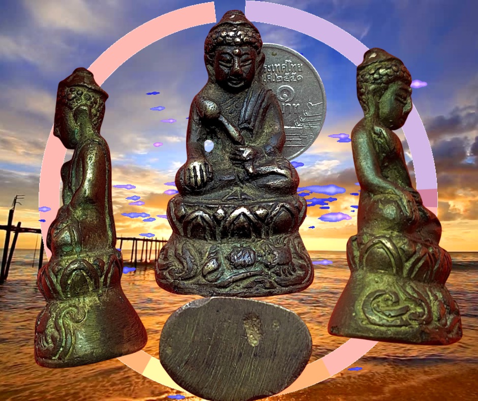 พระบัวเข็มหล่อเนื้อทองผสมขนาด 2.5 x 7.5 ซม. นิมนต์ท่านมาจากสนามสวนรักนครราชสีมาเมื่อปี 2531 โมเมกันว่าท่านคือของหลวงพ่อโต วัดบ้านกล้วย ปีนี้ 2567 พบท่านอีกครั้งได้ยินเสียงแผ่วแว่ว ๆในสายลมว่าท่านไม่ได้มาจากวัดบ้านกล้วยนะ ท่านใดจะนิมนต์ต่อไป 700.- บาทครับ.