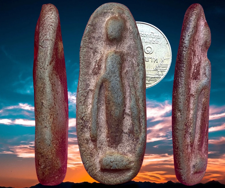 พระยืนปางประทานพรเนื้อดินยุคเเรก “บล็อกนิยม” เศียรพระมีขีด หลวงพ่อกวย วัดโฆสิตาราม ชัยนาท ขนาด 2 x 5 ซม. หลงย้ายท่านไปกำแพงเพชรกว่า 20 ปี วันนี้นิมนต์ท่านกลับมาแล้ว 1,000.- บาทครับ.