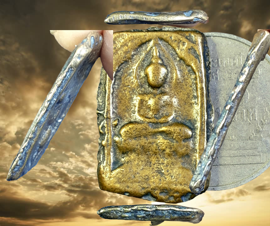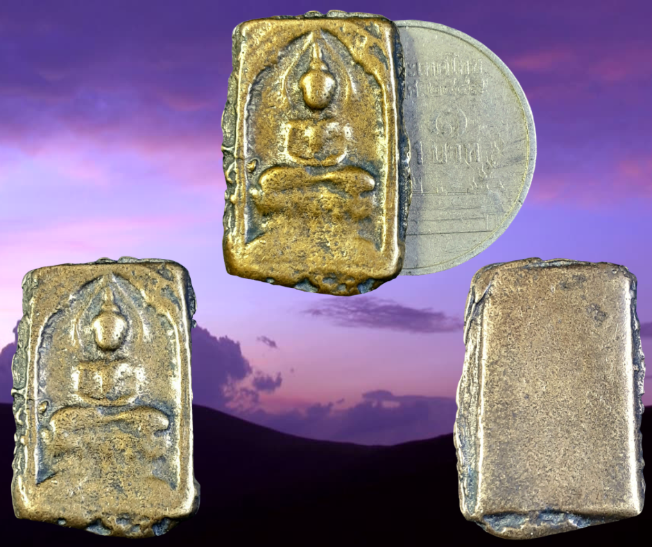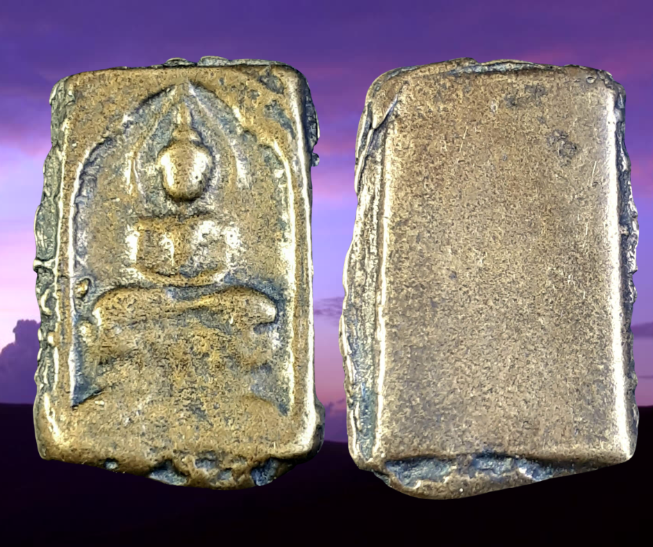 พระเหรียญหล่อพิมพ์ประภามลฑลตัดชิดกลางเนื้อทองผสม หลวงปู่ศุข วัดปากคลองมะขามเฒ่า ชัยนาท วัตถุมงคลที่หลวงปู่ท่านสร้างและเป็นที่นิยมคือ.- พระพิมพ์สี่เหลี่ยมประภามณฑล เป็นพระยอดนิยมของท่านพิมพ์หนึ่ง มีแบ่งพิมพ์ย่อยออกไปอีกหลายแม่พิมพ์ สร้างจากเนื้อโลหะหลายชนิด ทั้งโลหะผสมประเภททองเหลือง ทองแดง สัมฤทธิ์ ชินเงิน และชินตะกั่ว เนื้อผงพุทธคุณ ผงคลุกรัก ด้านหลังเรียบ มีทั้งหลังจารอักขระ และไม่จาร บางพิมพ์ด้านหลังเป็นยันต์นูนก็มี (วัดดอนตาล) หลวงปู่ศุขท่านมรณภาพปี 2466 …องค์ที่นำมาเสนอนี้เป็นพิมพ์เทเดี่ยวไม่ได้ตะไบแต่งปีก เดิม ๆ ประกันแท้. 2,000.- บาทครับ.