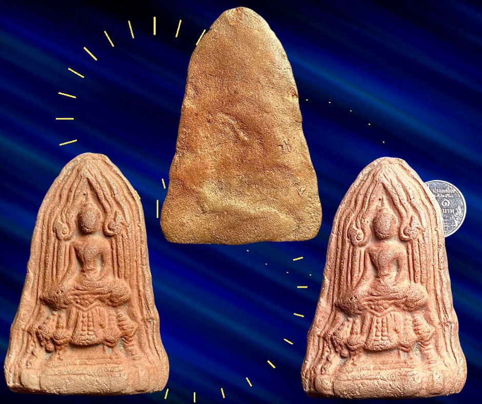 พระโคนสมอเป็นพระสมัยอยุธยายุคปลายต่อเนื่องรัตนโกสินทร์ตอนต้น เป็นพระขนาดใหญ่พบเนื้อดินมากกว่าเนื้อชิน จะเป็นพิมพ์ประจำวันเกิดเป็นส่วนมาก ประวัติเล่ากันว่าเมื่อเสียกรุงศรี ฯ พระชุดนี้ถูกทิ้งไว้นานเมื่อสร้างกรุงเทพ ฯ ก็ขนจากอยุธยามาบรรจุไว้ตามวัดต่าง ๆ บางส่วนนำมากองไว้ที่โคนต้นสมอภิเภกหน้าพิพิธภัณฑ์สถานแห่งชาติข้างสนามหลวง คนเดินผ่านก็หยิบไปคนละองค์สององค์เพราะความสวย พระจากอยุธยาจึงมีชื่อใหม่ที่กรุงเทพ ฯ ตรงโคนต้นสมอและเรียกกันต่อ ๆ มาว่า “พระโคนสมอ” และบางวัดก็สร้างเพิ่มใหม่เพื่อบรรจุกรุร่วมกันกับพระ (กรุเก่าที่สร้างในสมัยอยุธยาเนื้อจะละเอียดนุ่มรักทองติดแน่น กรุใหม่รัตนโกสินทร์เนื้อจะหยาบรักทองใหม่สดกว่า) พระโคนสมอจึงมีทั้งของอยุธยาและของกรุงรัตน์โกสินทร์ ฯ องค์ที่นำเสนอนี้เป็นพระพิมพ์นั่งมารวิชัยฐานผ้าทิพย์ในซุ้มเรือนแก้ว ขนาด 5 x 7.5 ซม. สมัยรัตนโกสินทร์ไม่มี รัก/ทองสภาพไม่สวย 500.- บาทครับ.