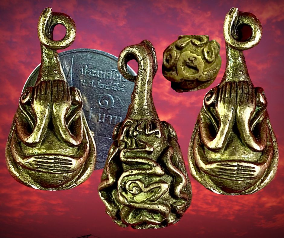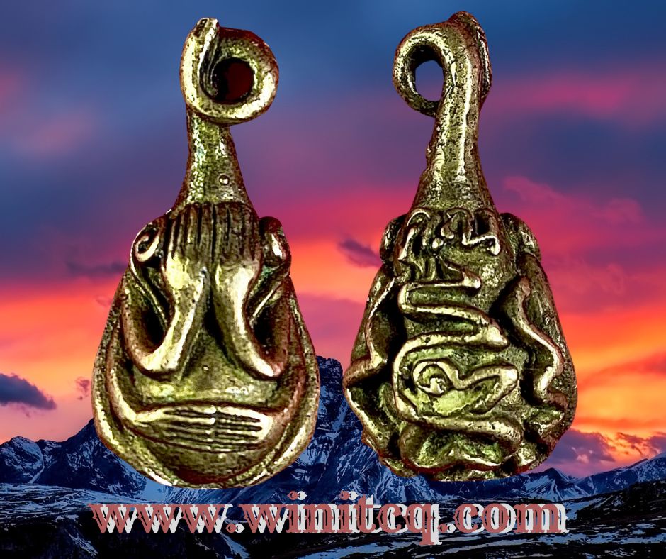 พระปิดตาน้ำเต้าเจ้าคุณคูณ ปริสุทโธ วัดบ้านไร่ นครราชสีมา เนื้อทองฝาบาตร ตอกโค๊ตด้านไต้องค์พระออกวัดใหม่พิเรนทร์ กทม. ปี 2537 ขนาด 1.5 x 2.0 ซม. นำเสนอ 400.- บาท ไม่มีกล่องครับ.
