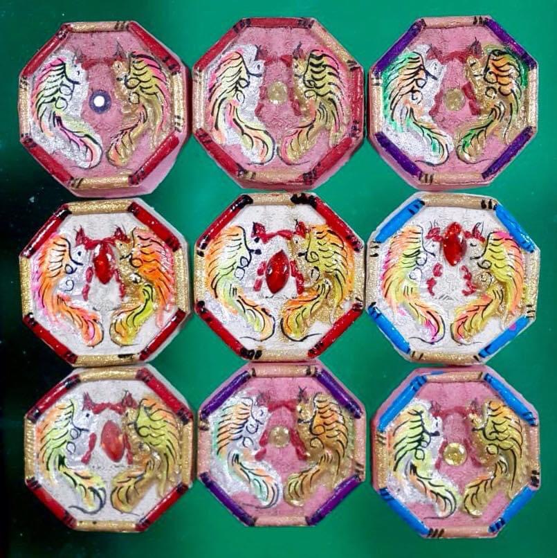 สาลิกาพิมพ์นี้รูปทรงกะทัดรัดเป็นสาลิกาคู่พิมพ์แปดเหลี่ยมเล็ก ขนาด 2.5 ซ.ม. พุทธคุณของสาลิกา แน่นอนว่าดีเด่นทางเมตตา ค้าขาย ชุดนี้สร้างเข้าพิธีพุทธาภิเษกในงานไหว้ครูที่สำนักสงฆ์เวฬุวันเมื่อ 10 ก.พ. 2555 จำนวน 600 องค์ เพ้นท์สวยมาจากอาศรม ฯ ครับ. 300.- (Zine 2.5 cm. 300 Thai/Bath.)