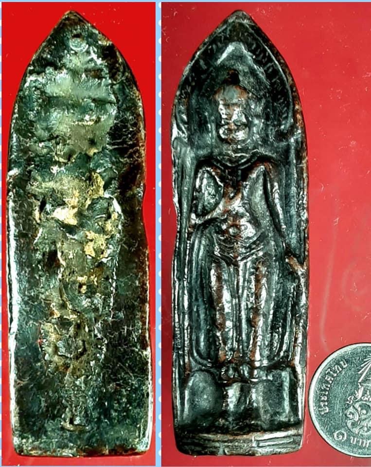 พระร่วงยืนหน้ายักษ์หลังตันเนื้อตะกั่วสนิมแดง ลพบุรี พระน่าจะแท้แต่ล้างจนเก้เลย อย่าลอกเลียนแบบนะ.