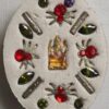 เทพจำแลงพิมพ์รูปใข่ เทพพิมพ์รูปใข่ชุดนี้นำเข้าอธิฐานจิตปลุกเษกในพิธีกรรมฐานเจ็ดวันปลายพรรษาปี 2554 นี้ ด้านหน้าฝังพลอยและรูปพระพิฆเนศวร และ/หรือ รูปพระพรมเทพธาดาชุบสามกษัตริย์ ด้านหลังฝังรูปพระพรมเทพธาดา และ/หรือ รูปพระพิฆเนควรชุบสามกษัตริย์ ฝังตะกุดเงินสี่ดอกรูปเครื่องหมายคูณ ล้อมด้วยพลอยแมงมุม และพลอยสี สร้างจำนวน 100 + 100 องค์ และตะกุดทองคำ 119 องค์ รวม 319 องค์ เพ้นท์สีสวยมาจากอาศรม ฯ size 3 X 4 cm.ครับ. 1,200.-