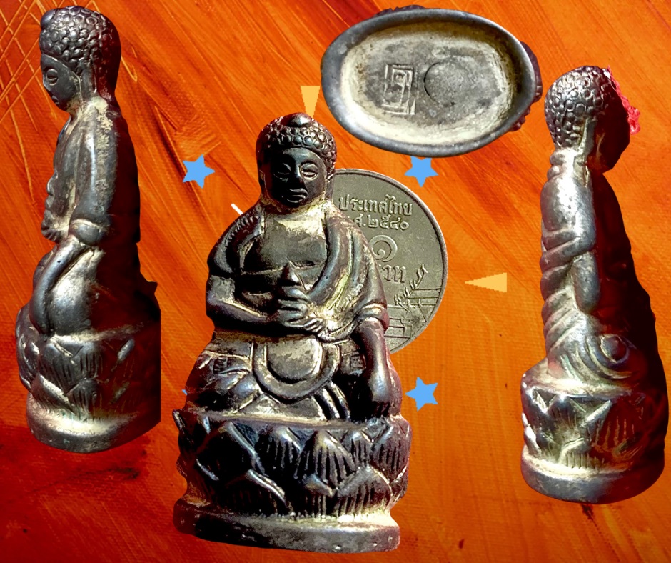 รูปหล่อลอยองค์พระยูไลเทพเจ้าจีน เป็นเนื้อแก่เงินคราบผิวเงินหนามีรอยเจาะอุดไต้ฐาน (กริ่งตัน) ขนาด 2 x 4 ซม. ไม่ทราบที่มา ในหรือนอก 2,000.- บาทครับ. (พระยูไลคือองค์สมเด็จพระสัมมาสัมพุทธเจ้าทุกพระองค์ของชาวจีน)