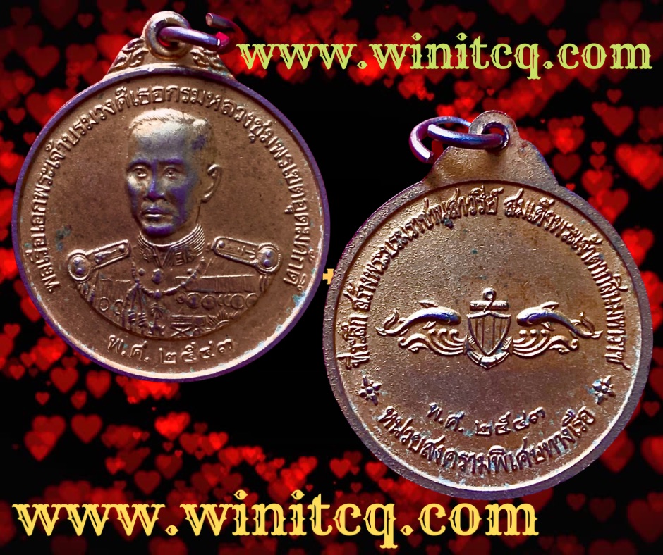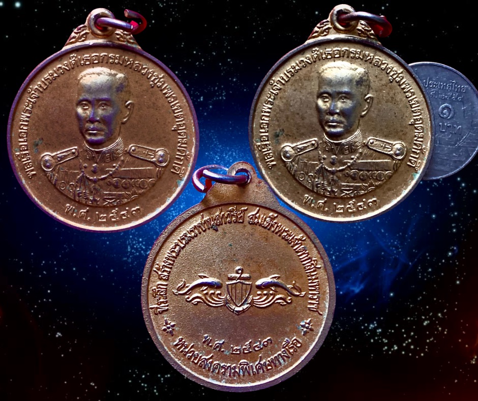 เหรียญกรมหลวงชุมพรเขตอุดมศักดิ์ …สร้างโดยหน่วยสงครามพิเศษทางเรือเพื่อเป็นที่ระลึกการสร้างอนุสาวรีย์สมเด็จพระเจ้าตากสิน ฯ พระองค์โสมสวลี ฯ เป็นประธานในพิธีพุทธาภิเษกที่วิหารหลวงพ่ออี๋ วัดสัตหีบ ชลบุรี เมื่อ 15 ต.ค.2543 สร้างไว้สามแบบ 1.เหรียญหลวงพ่ออี๋ 2.เหรียญพระเจ้าตากสิน 3.เหรียญกรมหลวงชุมพร เหรียญนี้เป็นเนื้อโลหะกะไหล่ทอง ขนาดเส้นผ่าศูนย์กลาง 3.0 ซม. 300.- บาทครับ.
