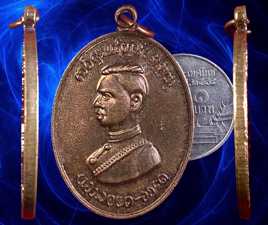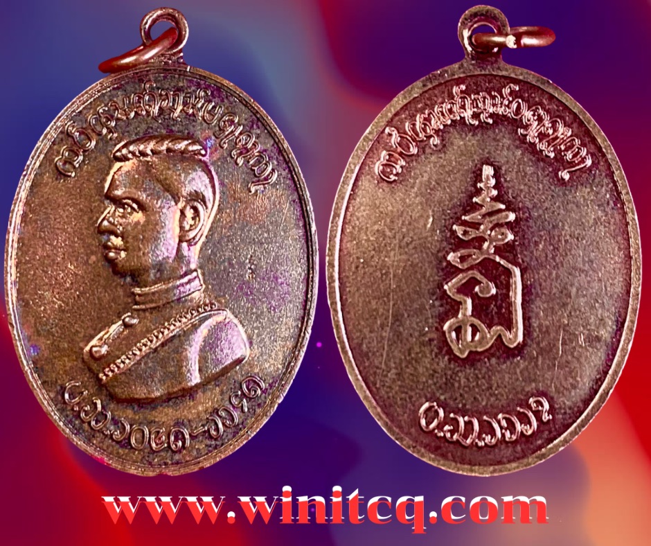 เหรียญสมเด็จพระนเรศวรมหาราช (ตองโซ่) รุ่นบารมีแผ่ไพศาล ปี 2560 เป็นภาษาไทยใหญ่ในรัฐฉาน แถวบนชื่อ “พระนเรศวรมหาราช” แถวล่าง “วันที่สวรรค์คต” เหรียญยังไม่ผ่านการใช้หายากมาก ขนาด 2.5 x 4.0 ซม. 300.- บาทครับ.