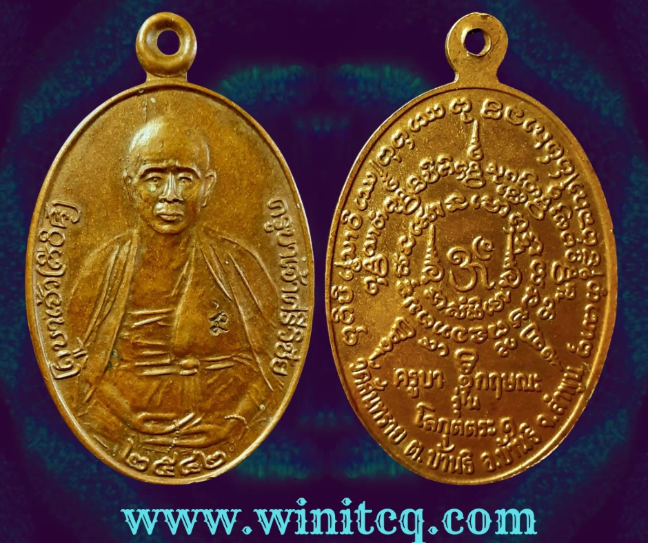 เหรียญรูปใข่ครูบากฤษณะ อินทวัณโณ รุ่นโลกุตระ ๑ ปี 2542 วัดสันทราย ลำพูน ด้านหน้ารูปครูบาเจ้าศรีวิชัย ตีโค๊ต “นะ” นิมนต์ท่านมาจากเชียงใหม่เมื่อปี 2543 ประกันแท้ 500.- บาทครับ.