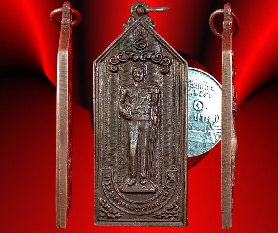 เหรียญกรมหลวงชุมพร ฯ สร้างเป็นที่ระลึกในงานหล่อพระรูปเสด็จในกรมหลวงชุมพรเขตอุดมศักดิ์ เพื่อประดิษฐาน ณ รร.พลทหาร เมื่อปี 2526 ขนาด 2 x 5 ซม. 300.- บาทครับ.