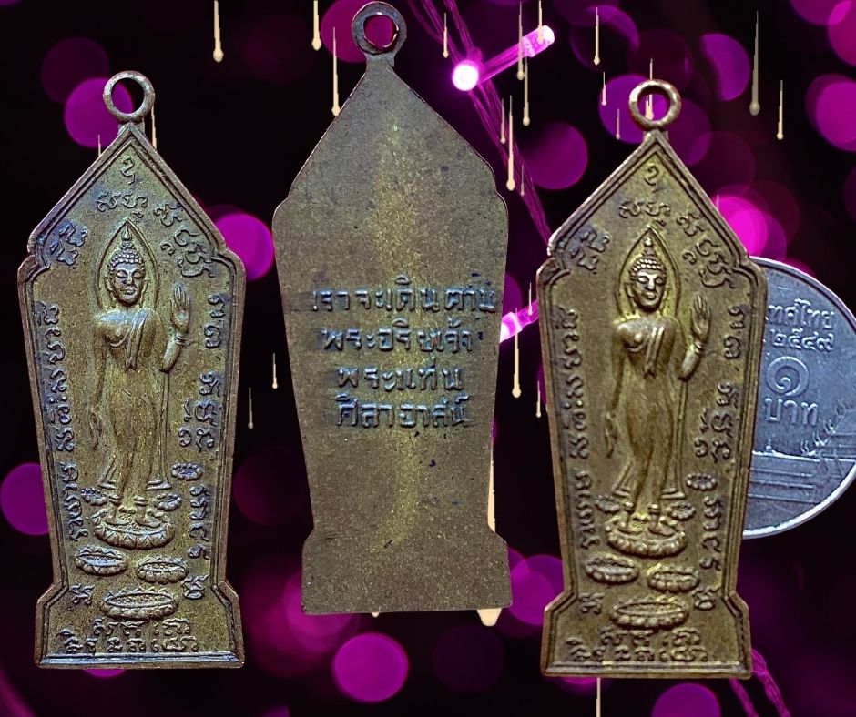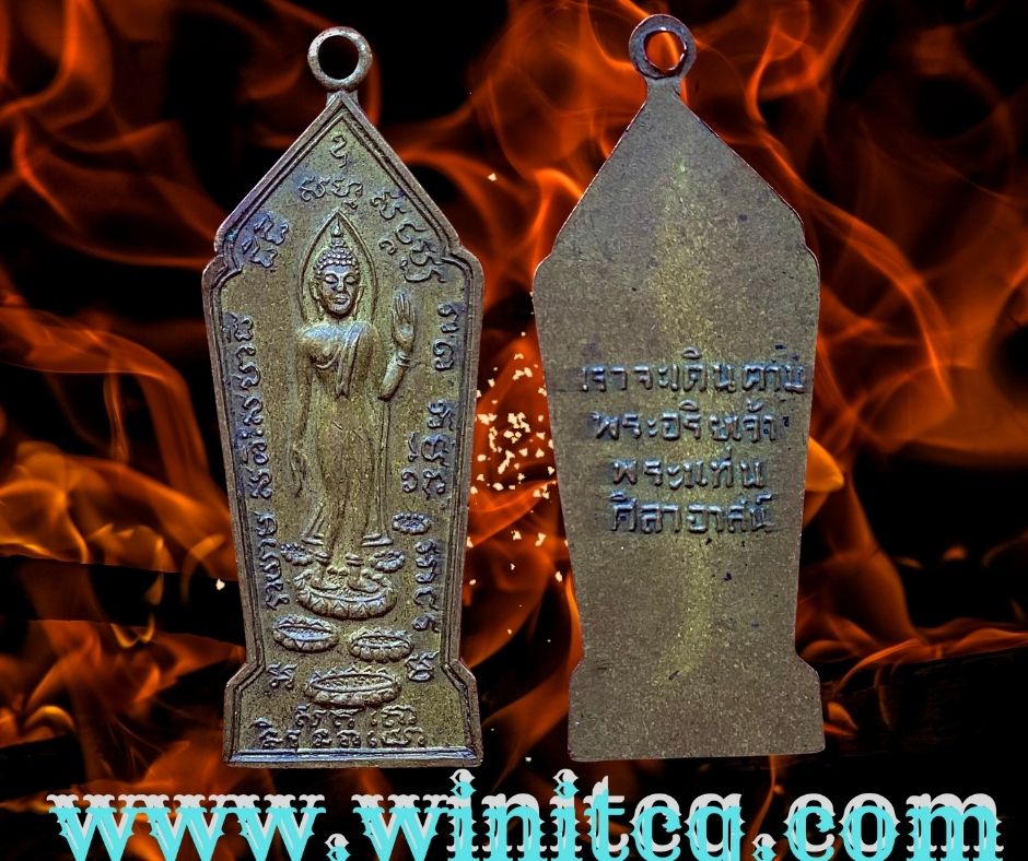 เหรียญพระลีลาพิมพ์ 25 พุทธศตวรรษ ขนาด 1.7 x 4.2 ซม. เราจะเดินตามพระอริยเจ้า วัดพระแท่นศิลาอาสน์ ต.ทุ่งยั้ง อ.ลับแล จ.อุตรดิตถ์ 200.- บาทครับ.