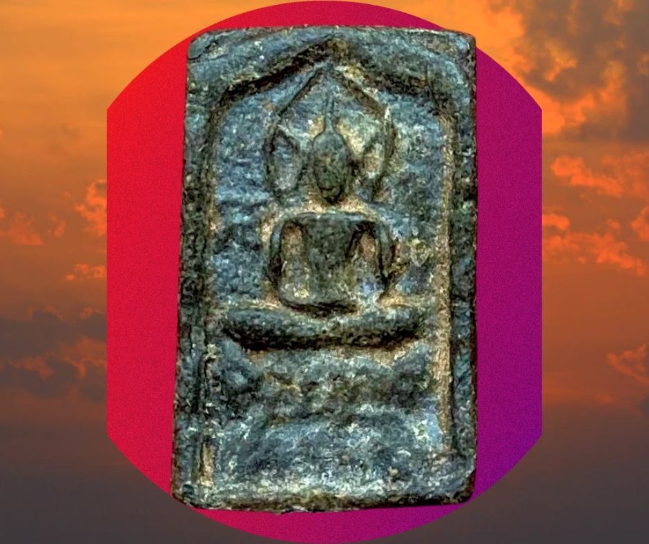 พระสี่เหลี่ยมพิมพ์ประภามณทลข้างรัศมีเนื้อชินตะกั่ว หลวงปู่ศุข วัดปากคลองมะขามเฒ่า