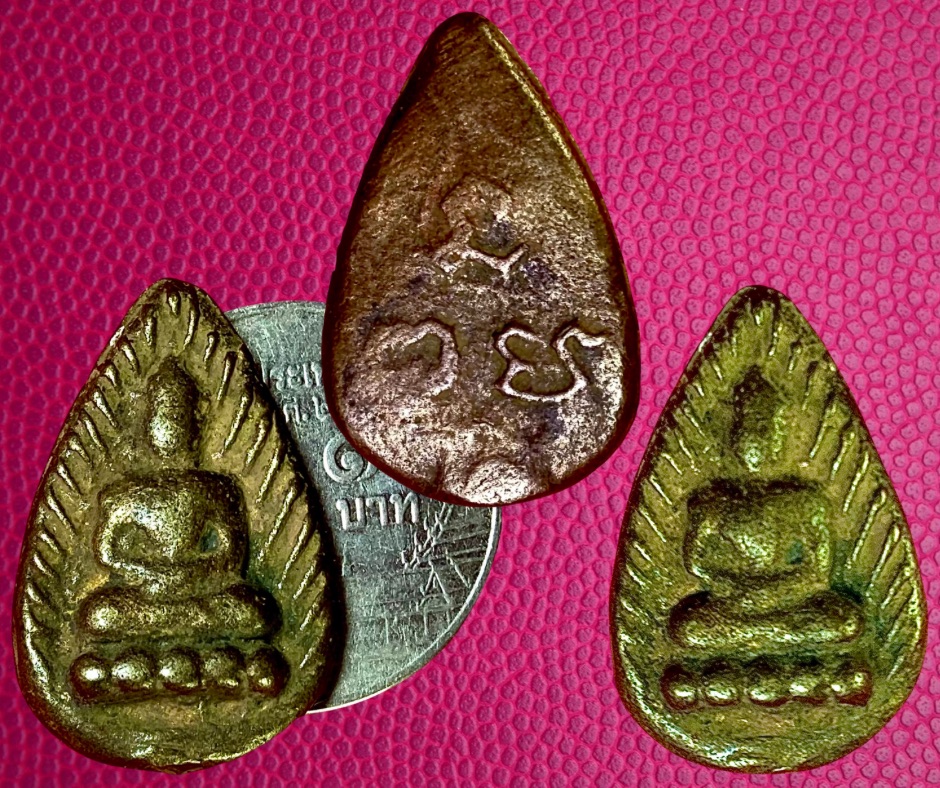 พระหล่อโบราณกลีบบัวหลังยันต์หลวงปู่บุญ วัดกลางบางแก้ว นครปฐม พิมพ์นี้เมื่อก่อนคิดและมั่นใจว่าเป็นของหลวงพ่อโบ๊ย วัดมะนาว เมื่อมาพบใบรับรองพระแท้ของนิตยสารพระท่าพระจันทร์ จึงต้องหันหลังกลับทันที พระเนื้อทองผสมเทหล่อที่วัดสร้างก่อนเนื้อเมฆพัตรซึ่งเป็นพระที่ทางวัดสั่งโรงงานผลิต องค์นี้ขนาด 1.5 x 2.3 ซม. 800.- บาทครับ.