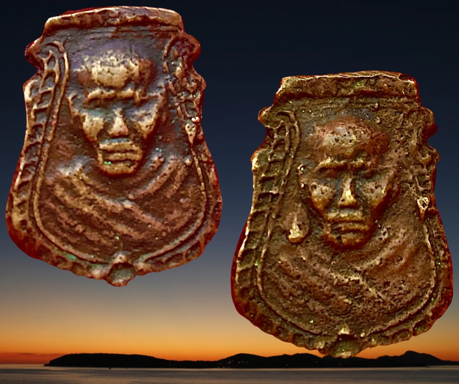 เหรียญหล่อโบราณพิมพ์หน้าเสือหลวงพ่อน้อย วัดธรรมศาลา นครปฐม องค์ที่นำมาเสนอเป็นพิมพ์สองหน้าเป้าปะกบเนื้อทองผสมหล่อช่อชนวนผสมแร่เกาะล้านรุ่น 2 ปี 2505-06 ขนาด 2 x 3 ซม. 3,500.- บาทครับ.