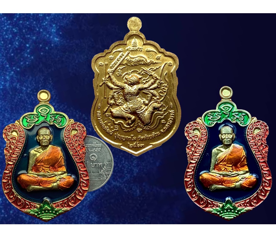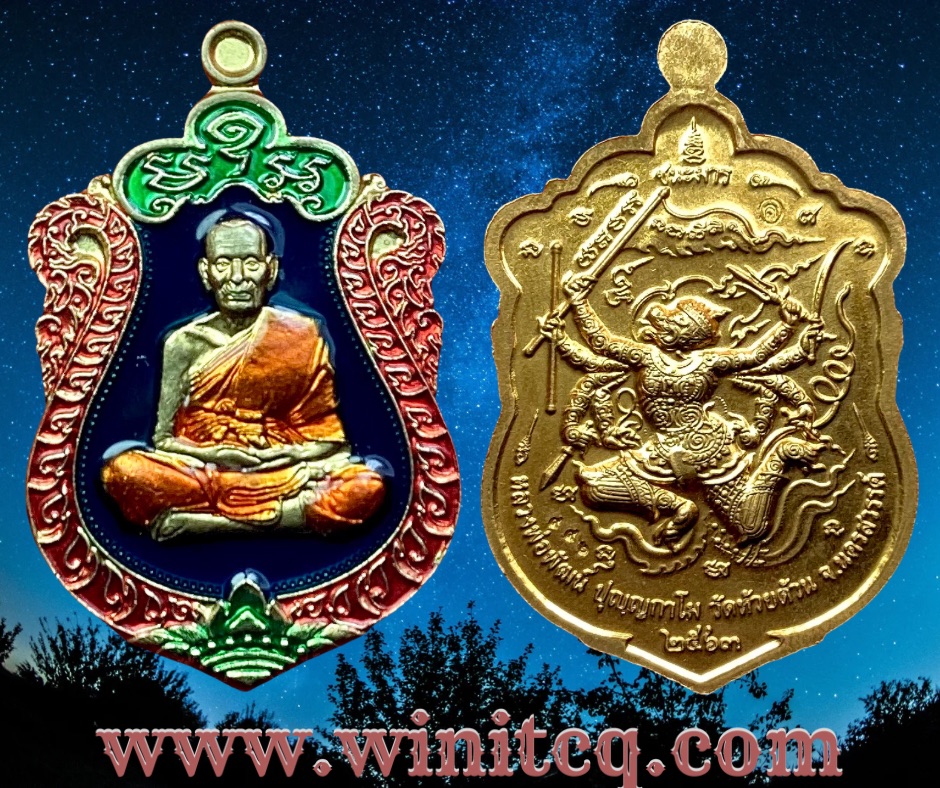 เหรียญเสมาชนะมาร หลวงพ่อพัฒน์ วัดห้วยด้วน (วัดธารทหาร) นครสวรรค์ ปี 2563 เนื้อทองชนวนตอกโค๊ตและหมายเลของค์ที่ ๙๙๖ เนื้อทองฝาบาตรลงยาน้ำเงิน-เขียว-แดง จีวรเหลือง สภาพเดิม ๆ ขนาด 3.0 x 4.5 ซม. 300.- บาทครับ.