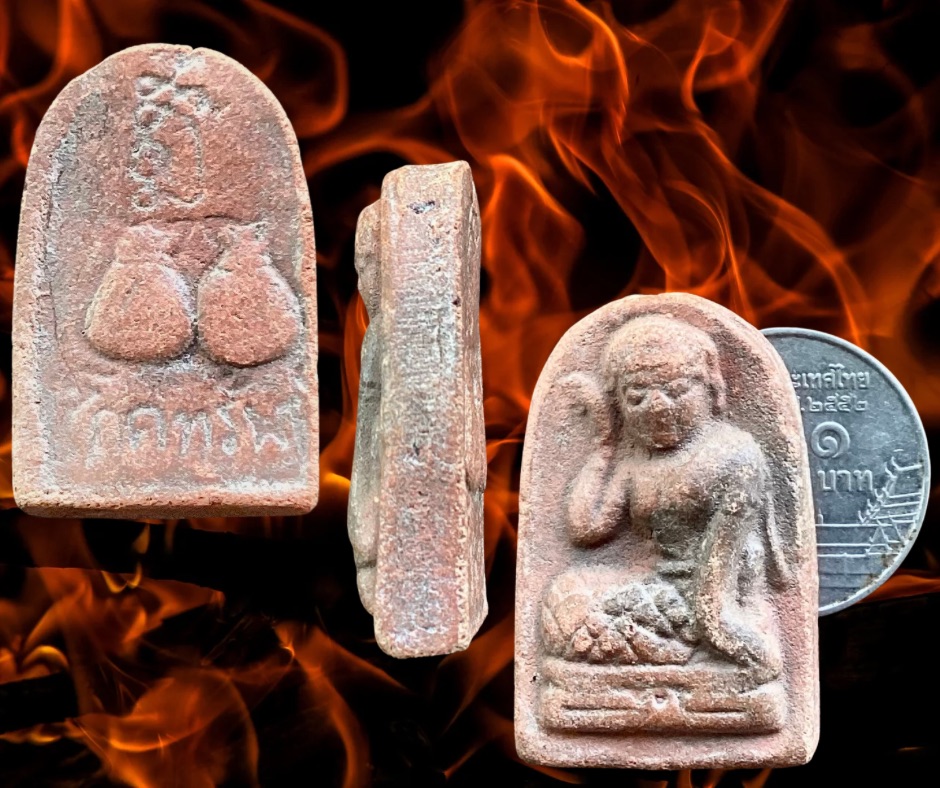 แม่นางกวักเนื้อดินเผาฐานเลข ๑ หลังถุงเงิน ถุงทอง ยันต์ “นะ” โภคทรัพย์ หลวงพ่อจง วัดหน้าต่างนอก อยุธยา ขนาด 2 × 3 ซม 400.- บาทประกันแท้ครับ.